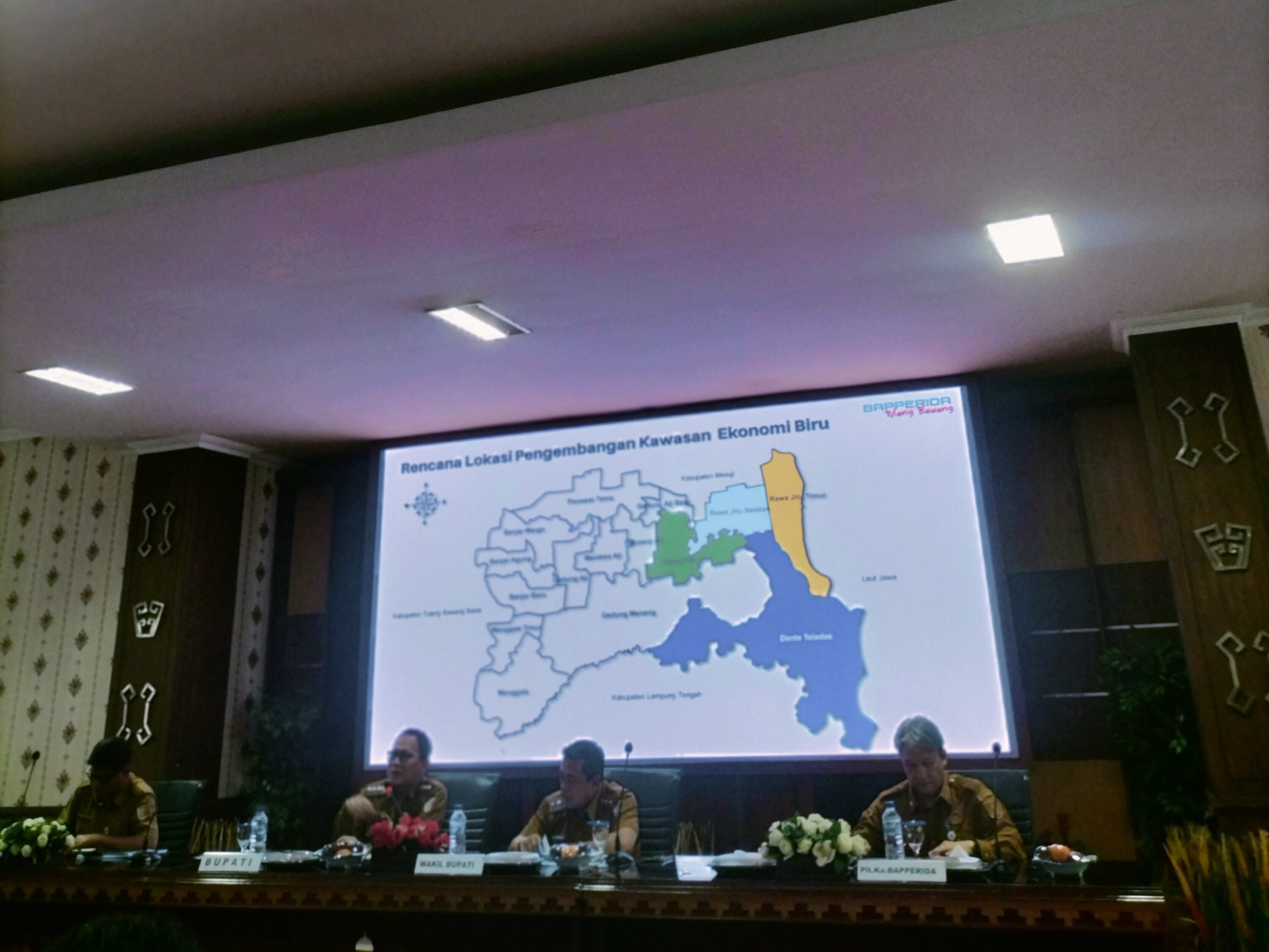 Salah satu fokus utama yang dipaparkan dalam ekspose tersebut adalah rencana pengembangan Kawasan Ekonomi Biru Kabupaten Tulang Bawang, yang diproyeksikan sebagai kawasan pertumbuhan baru berbasis potensi wilayah dan sejalan dengan arah kebijakan pembangunan nasional.
