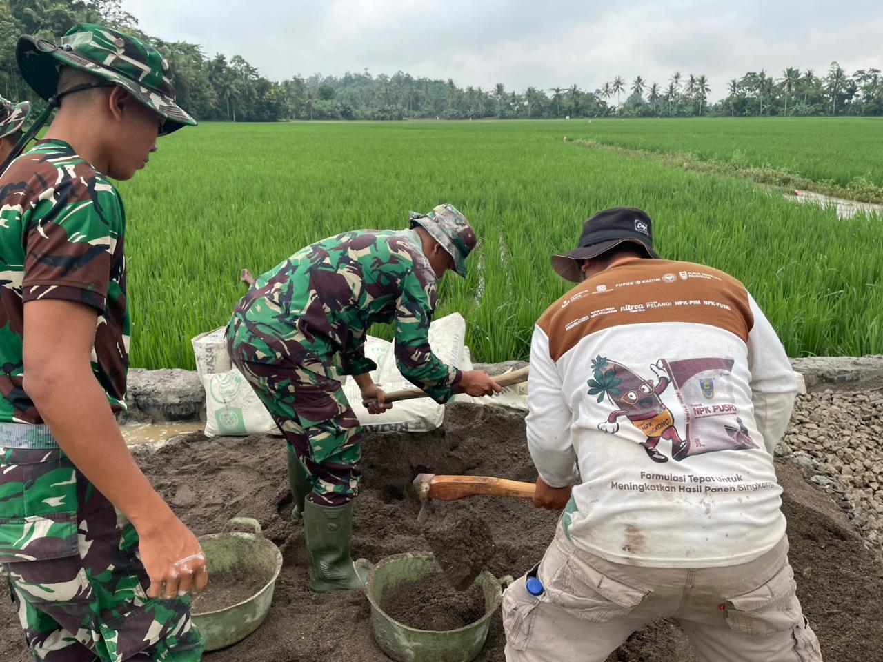 24Detik.com | Pesawaran – Di tengah hamparan sawah yang menghijau di Desa Gunung Rejo, Kec Way Khylau, Kab Pesawaran, Rabat beton TMMD ke-127 Kodim 0421/LS sedang dibangun dengan cepat. Tujuan pembangunan ini adalah untuk membantu petani dalam mengangkut hasil panen dengan lebih mudah dan efisien.
