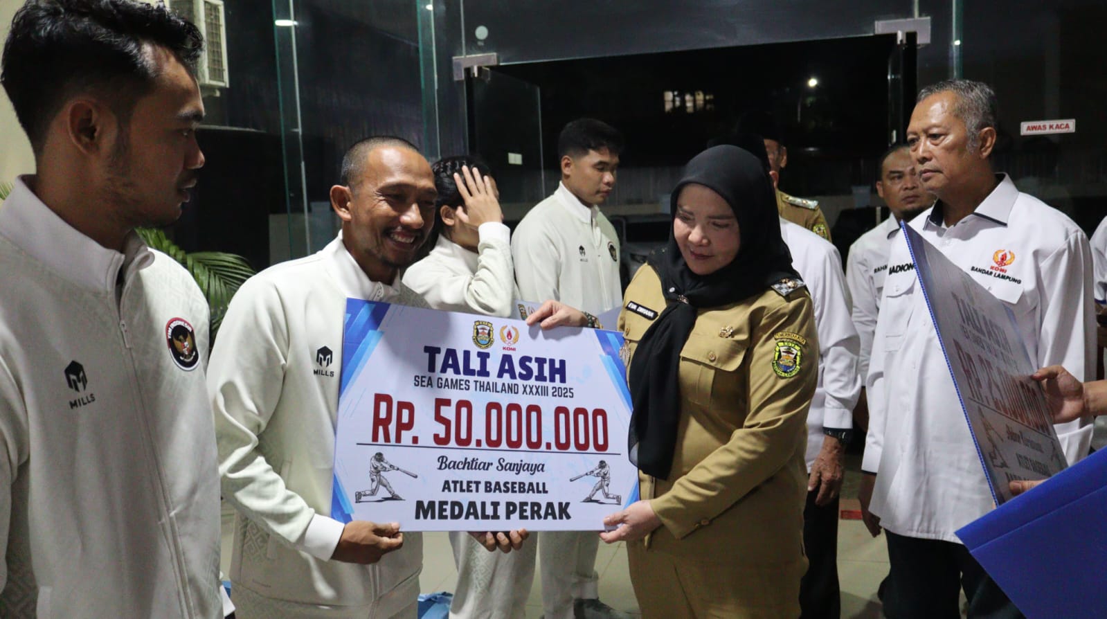 24Detik.com | Bandar Lampung – Wali Kota Bandar Lampung, Hj. Eva Dwiana memberikan apresiasi setinggi-tingginya kepada para atlet muda asal Kota Bandar Lampung yang sukses mengharumkan nama bangsa dan daerah di ajang SEA Games XXXIII Thailand 2025. Bentuk apresiasi tersebut diwujudkan melalui penyerahan tali asih (bonus) yang dilangsungkan di GOR Siger, Way Halim, Selasa (10/3/2026) malam.